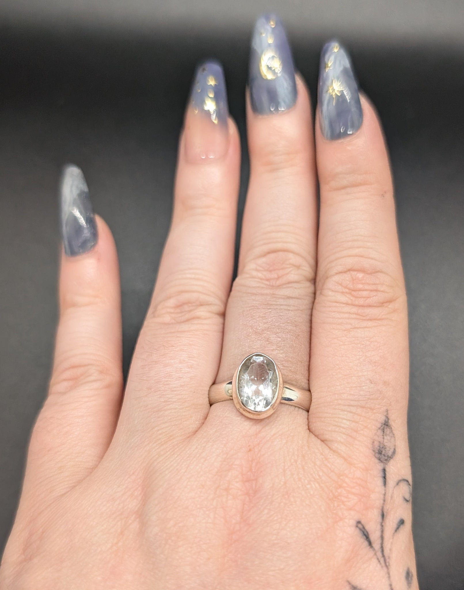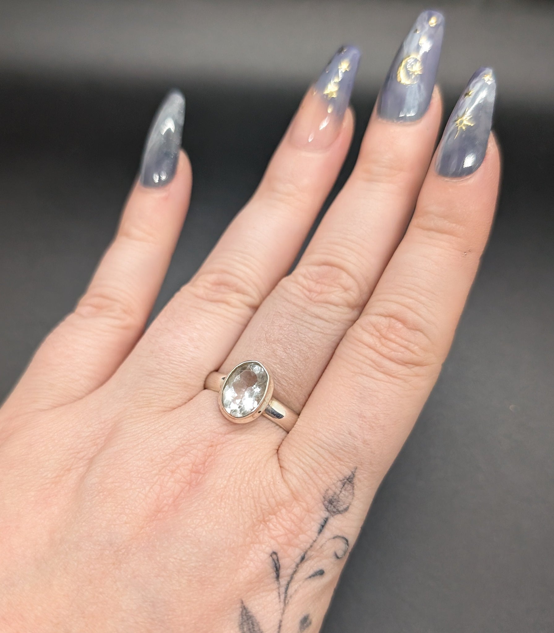 High quality 0.925 sterling silver faceted hyalite opal sized ring- size 10
