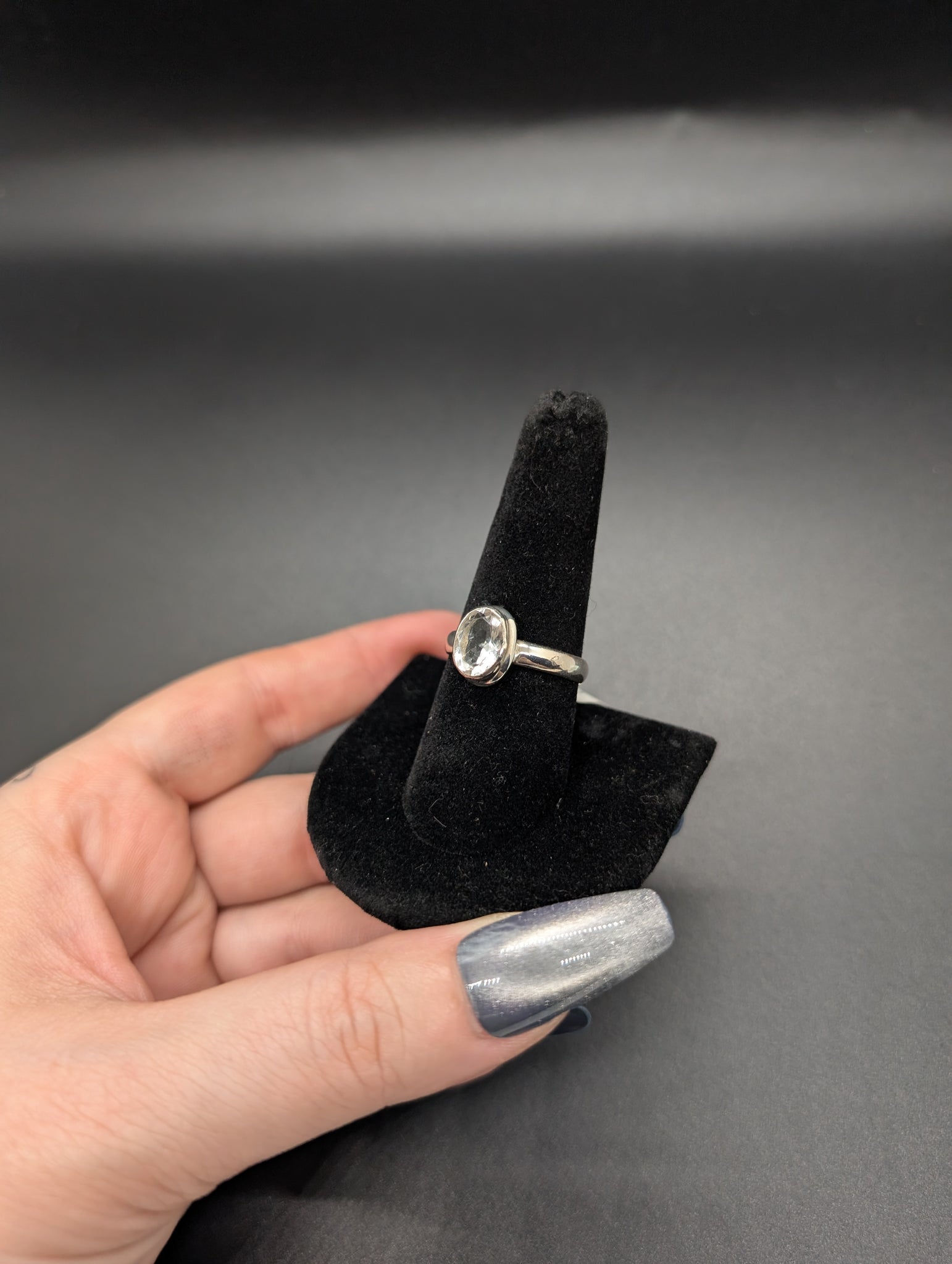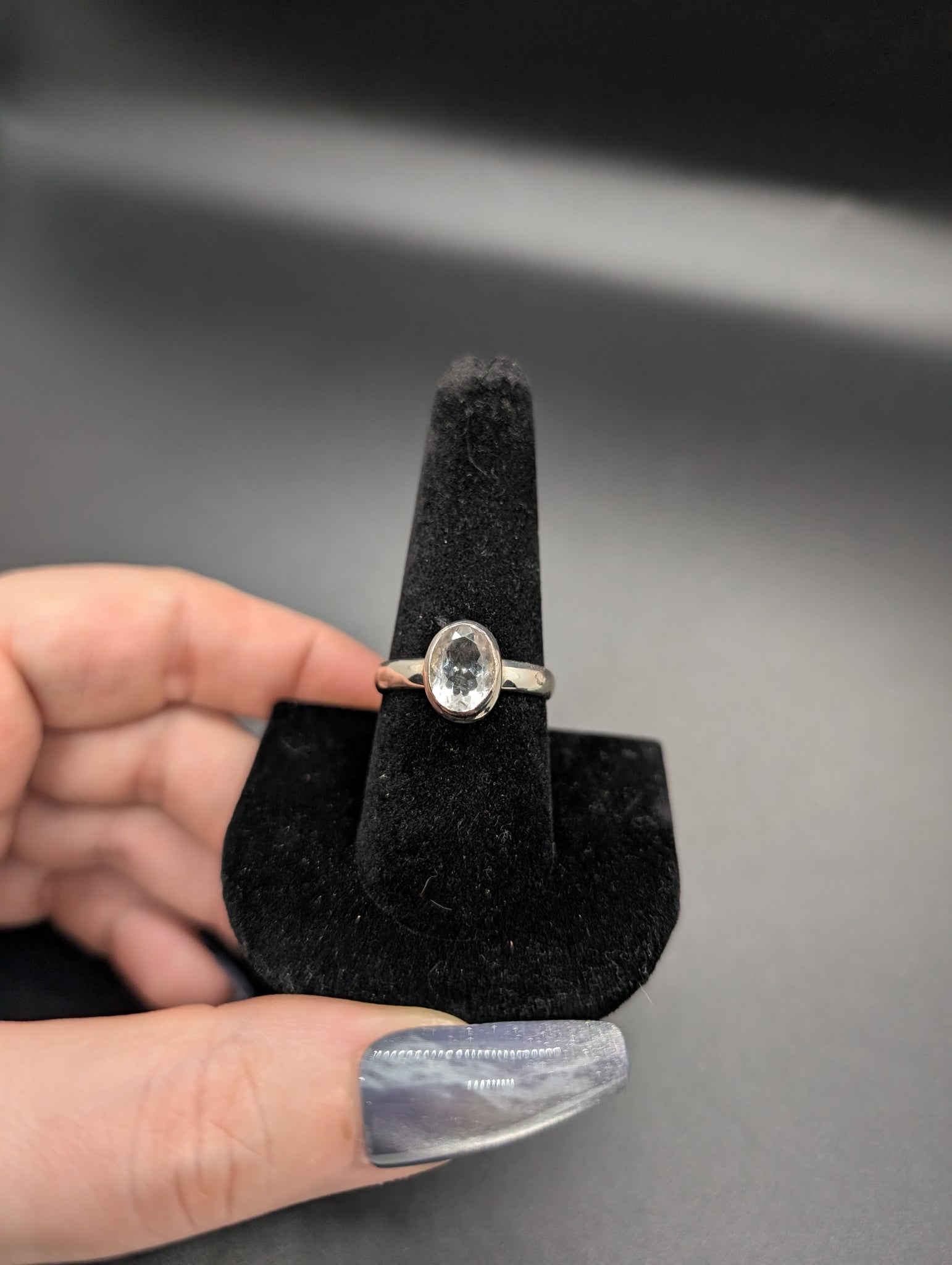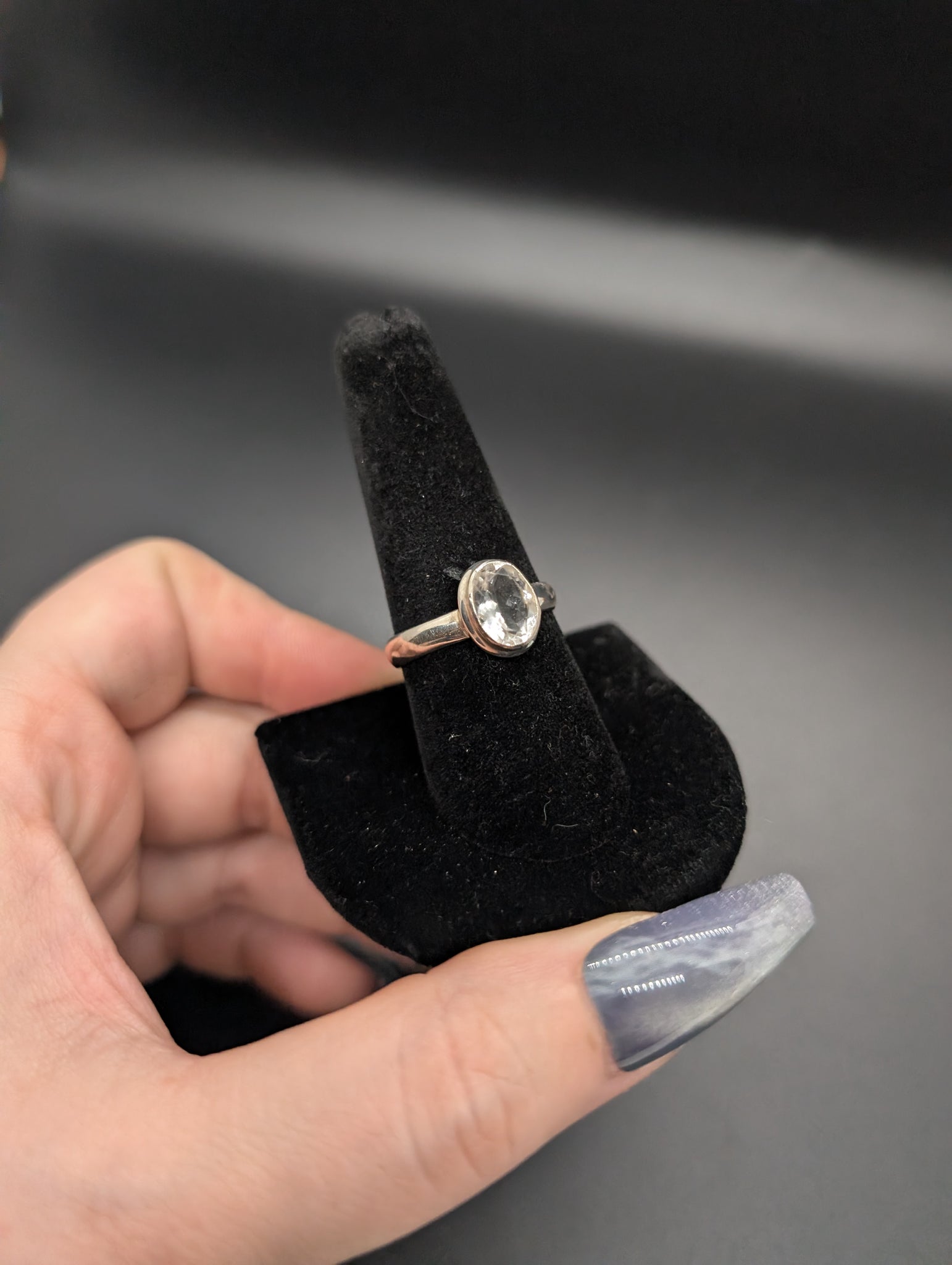 High quality 0.925 sterling silver faceted hyalite opal sized ring- size 9