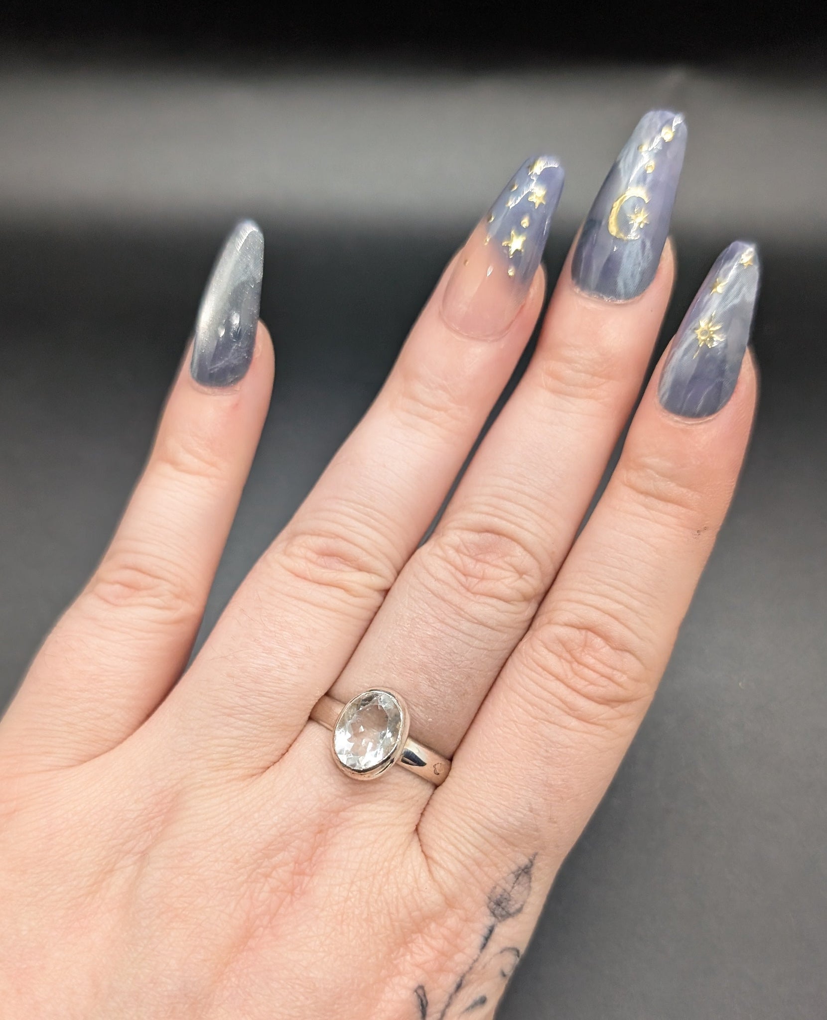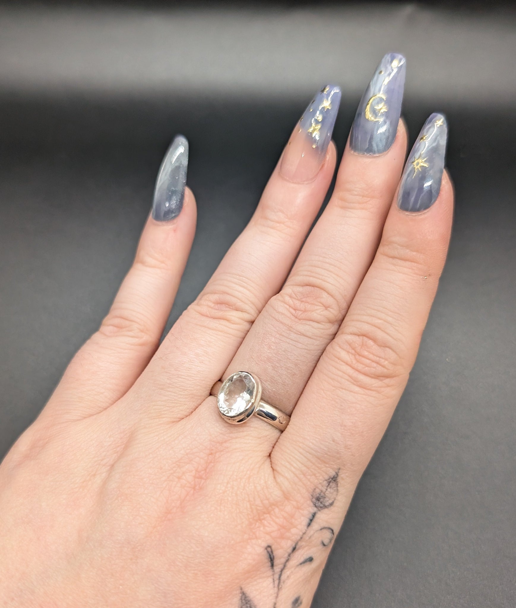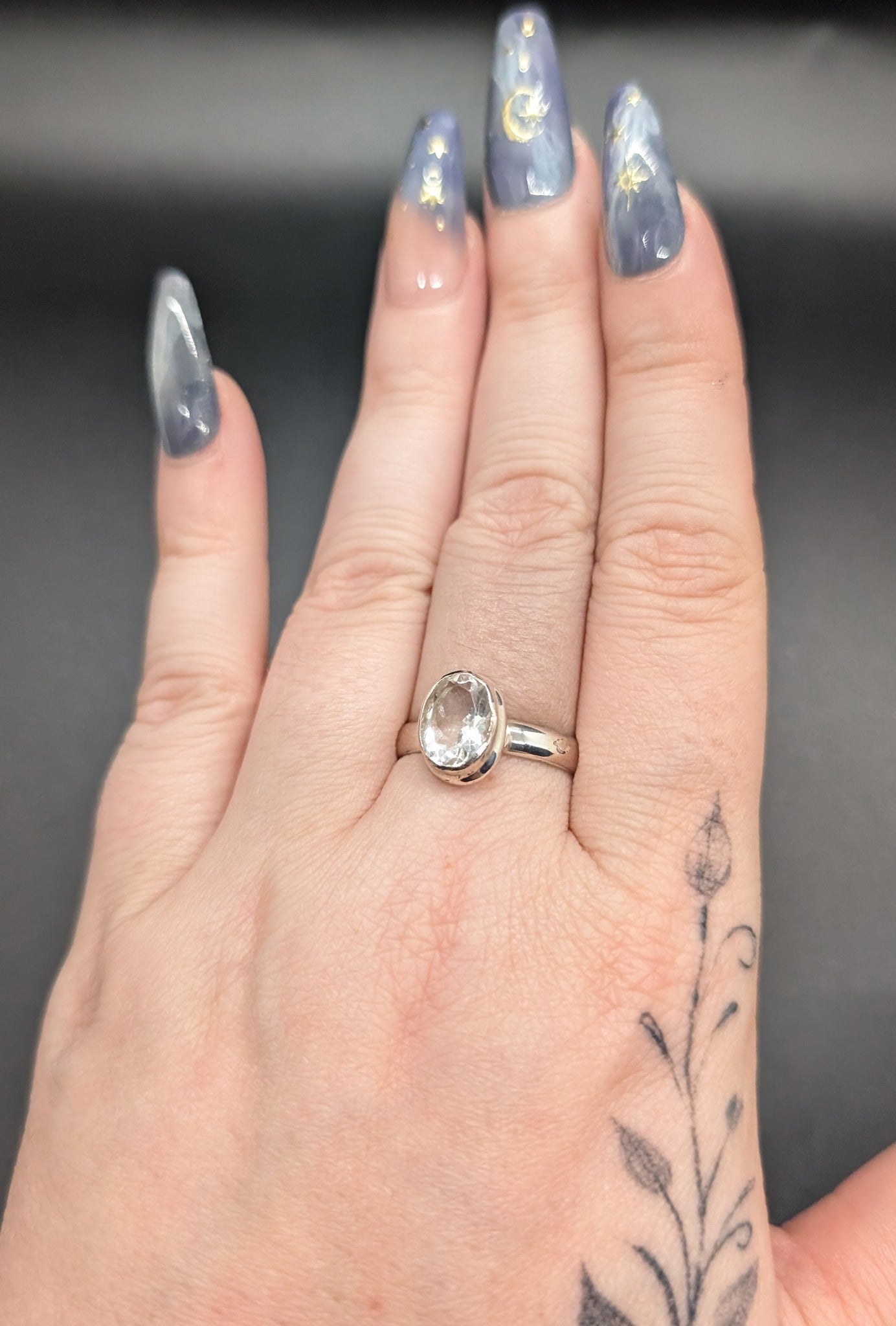 High quality 0.925 sterling silver faceted hyalite opal sized ring- size 9