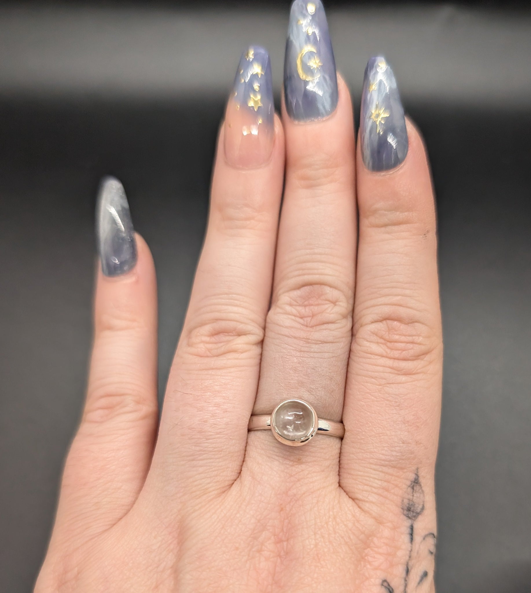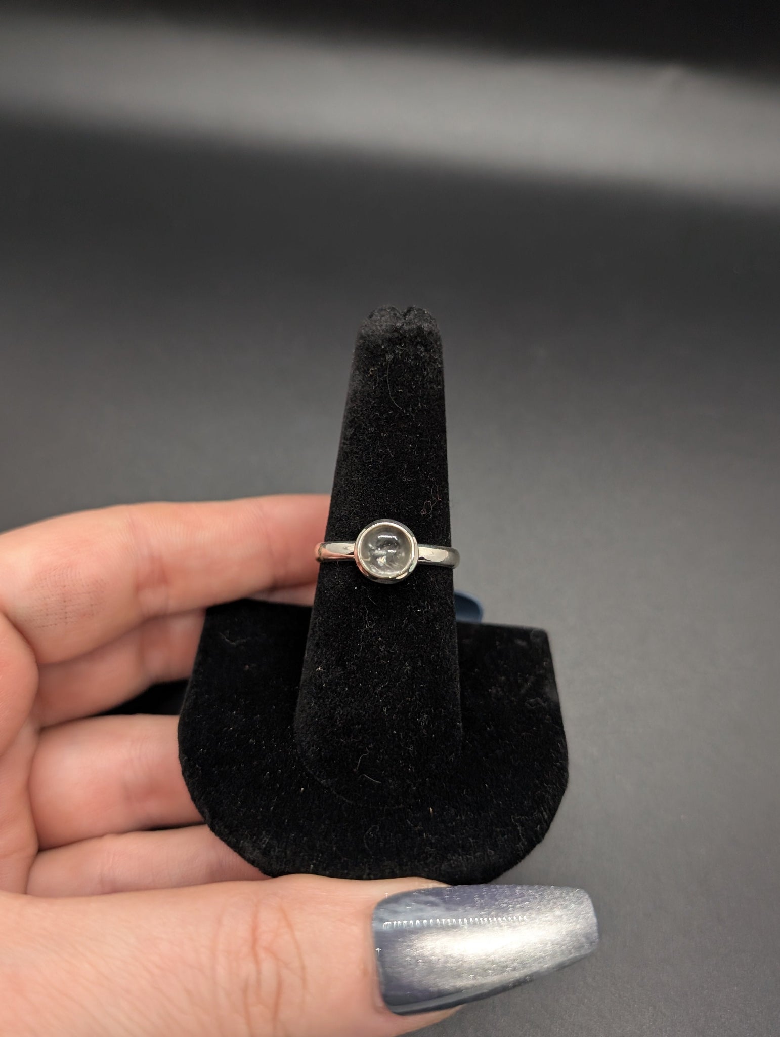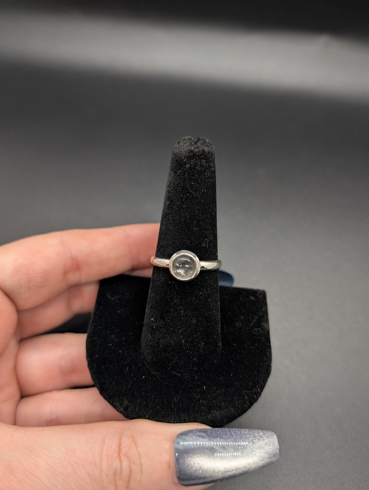 High quality 0.925 sterling silver hyalite opal sized ring- size 8