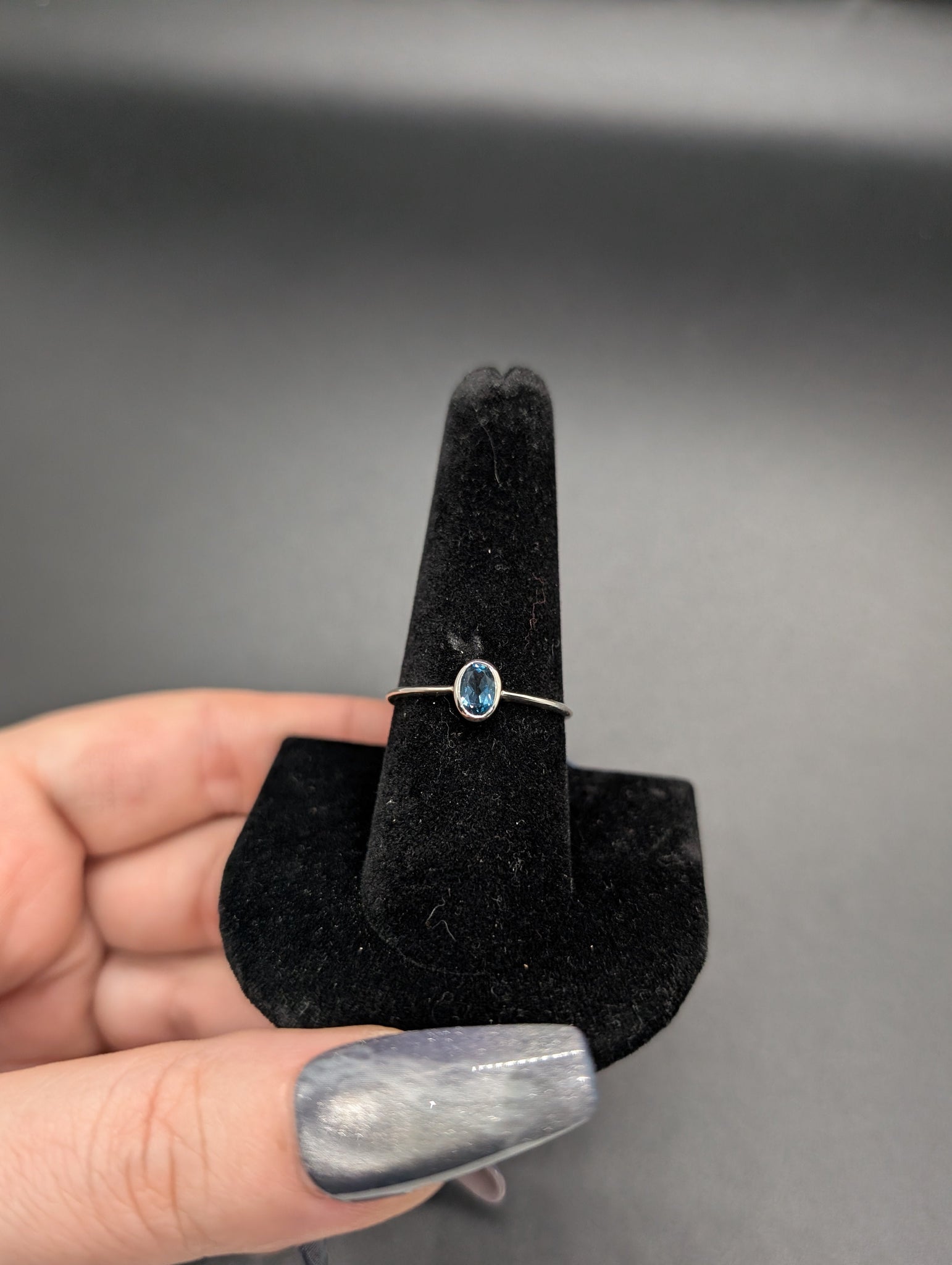 High quality 0.925 sterling silver London blue topaz ring. Size 9.
